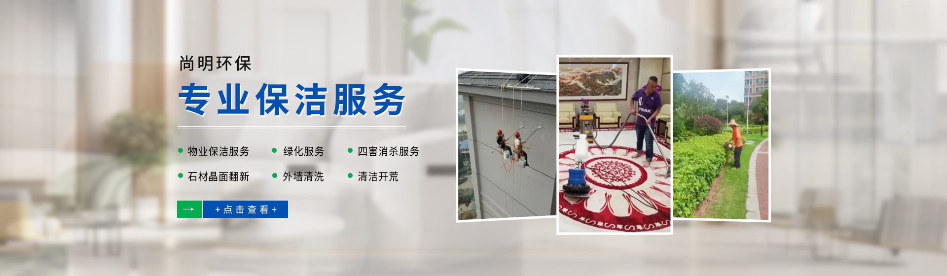 東莞市尚品清潔服務(wù)有限公司開設(shè):物業(yè)保潔服務(wù)、綠化服務(wù)、四害消殺服務(wù)以及清潔開荒、石材晶面翻新處理外墻清洗等業(yè)務(wù)